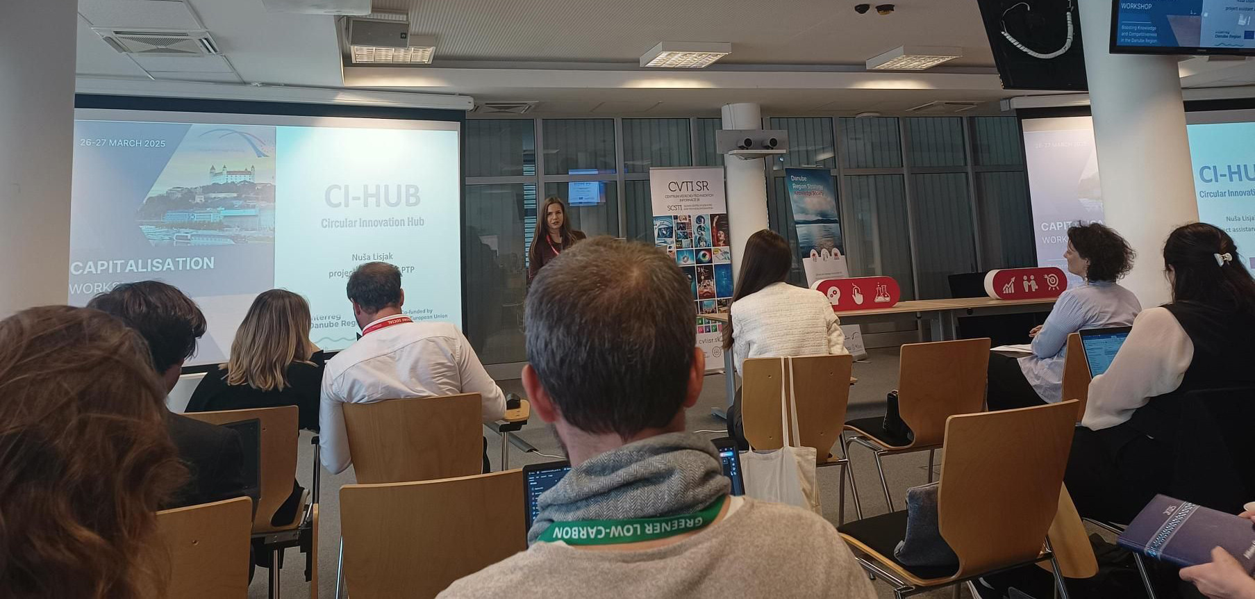 Kratki opis projekta: Projekat CI-Hub ima za cilj unaprijediti inovacioni potencijal manje razvijenih industrijskih regija dunavske oblasti kroz uspostavljanje transnacionalnog akceleratora za cirkularnu tranziciju, zasnovanog na modelu korisničkog iskustva i tehnologijama Industrije 4.0. Projekat podržava MSP-ove u sedam ključnih sektora kroz razvoj alata za cirkularne poslovne modele, testiranje inovativnih rješenja i jačanje saradnje među akterima u jednom integrisanom inovacionom ekosistemu. Vodeći partner je Pomurje Tehnološki Park (Slovenija), a projekat se implementira u trinaest država: Slovenija, Njemačka, Austrija, Hrvatska, Bugarska, Mađarska, Češka, Srbija, Moldavija, Bosna i Hercegovina, Crna Gora, Rumunija i Slovačka. Period implementacije projekta je od 1. januara 2024. do 30. juna 2026. godine, dok ukupan budžet iznosi 2.351.007,00 EUR, od kojih je 80% finansirano iz Interreg Programa za dunavsku regiju. Više informacija o ovom projektu dostupno je na sljedećem linku: CI-Hub.