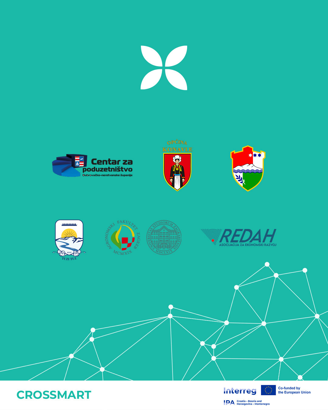 Kratki opis projekta: Projekat CROSSMART ima za cilj unaprijediti inovacione kapacitete agripoduzetnika u Hrvatskoj, Bosni i Hercegovini i Crnoj Gori kroz bolji pristup digitalnim i preciznim poljoprivrednim tehnologijama. Biće uspostavljena CROSSMART digitalna platforma s informacijama o trendovima, dobrim praksama, mogućnostima finansiranja i zakonodavnim izmjenama. Predviđen je i razvoj softvera za upravljanje farmama, integrisanog s pametnom opremom poput dronova, meteoroloških stanica, senzora za tlo i mobilnih laboratorija, koji omogućava kontinuirano praćenje vremenskih uslova i stanja usjeva u realnom vremenu. Vodeći partner je Centar za poduzetništvo Dubrovačko-neretvanske županije (Hrvatska), a projekat se implementira u tri države: Hrvatska, Bosna i Hercegovina i Crna Gora. Projekat traje od 1. septembra 2024. do 28. februara 2027. godine. Ukupan budžet projekta iznosi 1.516.844,60 EUR, od kojih je 85% finansirano iz programa Interreg IPA Hrvatska – Bosna i Hercegovina – Crna Gora. Više informacija o ovom projektu je dostupno na sljedećem linku: CROSSMART .