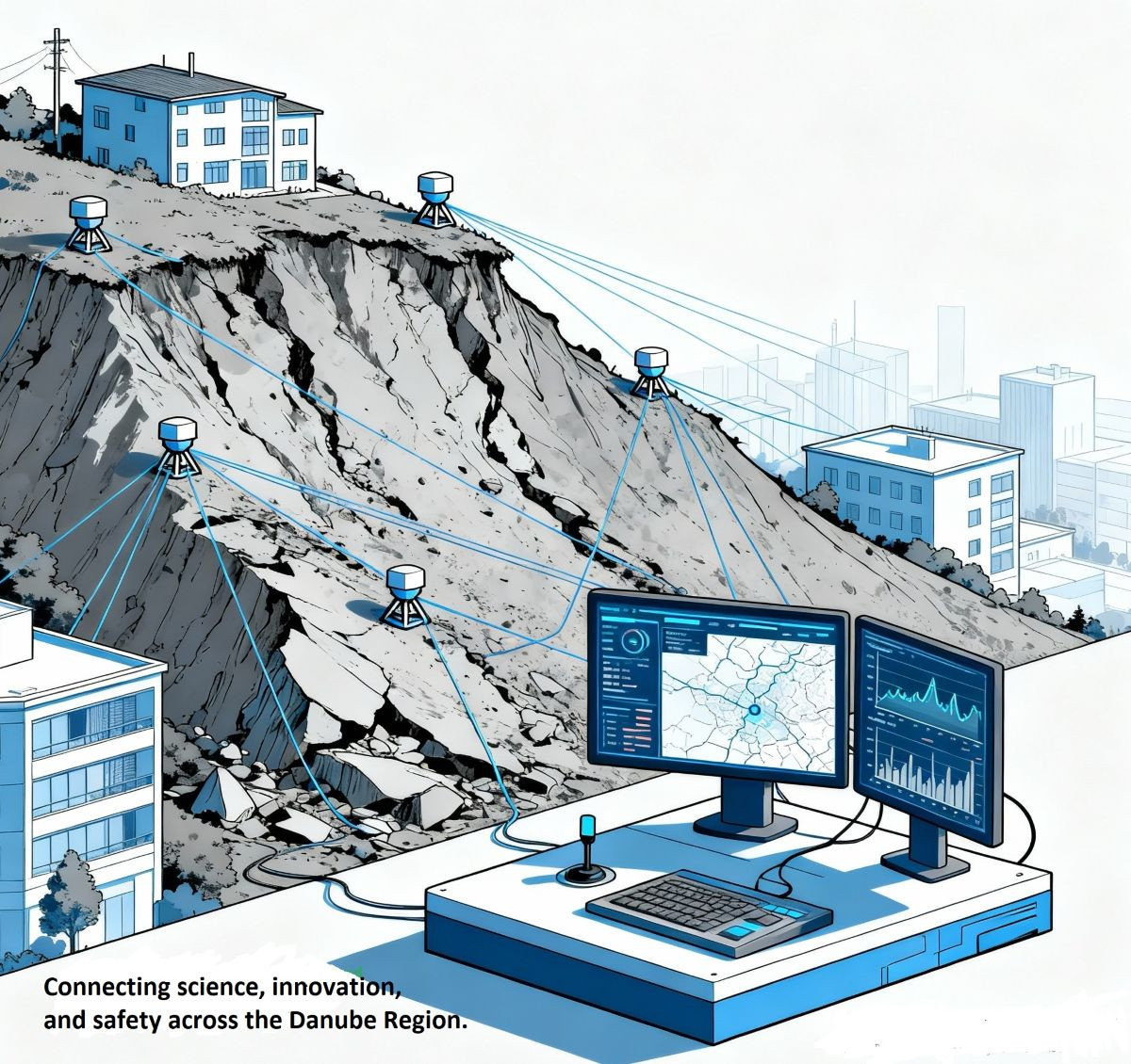 Kratki opis projekta: Projekat GeoNetSee ima za cilj razviti napredno rješenje za praćenje nestabilnog terena i infrastrukturnih objekata kroz uspostavljanje mreže geosenzora i platforme za prikupljanje, obradu i vizualizaciju podataka u realnom vremenu. Digitalna platforma Danube Collaborative Center (DCC) omogućit će dijeljenje podataka, istraživačkih nalaza i najboljih praksi aktera iz različitih disciplina. Rješenje uključuje instalaciju stalnih GNSS/CORS stanica u Srbiji, Crnoj Gori i BiH, koje će biti povezane s Evropskim sistemom za posmatranje tektonskih ploča (European Plate Observing System - EPOS) i GNSS-EPN mrežom, omogućavajući dvosmjernu razmjenu podataka i jačanje regionalne otpornosti na geohazarde. Vodeći partner je Univerzitet u Beogradu (Srbija), a projekat se implementira u devet država: Srbija, Rumunija, Bosna i Hercegovina, Mađarska, Austrija, Crna Gora, Slovenija, Češka i Hrvatska. Period implementacije projekta je od 1. januara 2024. do 30. juna 2026. godine, dok ukupan budžet iznosi 1.791.280,00 EUR, od kojih je 80% finansirano iz Interreg Programa za dunavsku regiju. Više informacija o ovom projektu dostupno je na sljedećem linku: GeoNetSee.