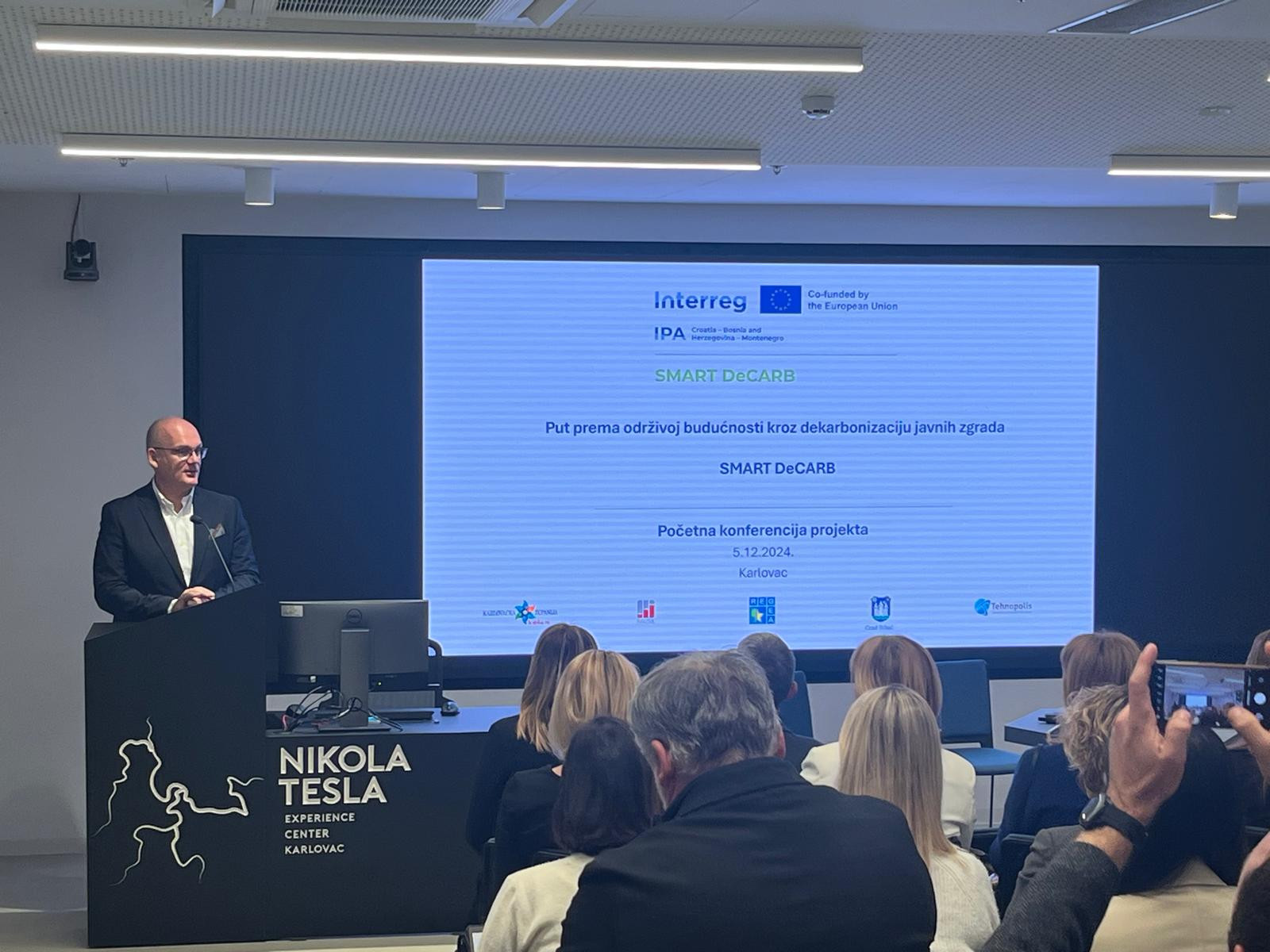 Kratki opis projekta: Projekat SMART-deCARB ima za cilj unaprijediti energetsku efikasnost i dekarbonizaciju javnih zgrada u Karlovačkoj županiji, Bihaću i Nikšiću - kroz razvoj digitalnih alata za prikupljanje i upravljanje energetskim podacima, optimizaciju rješenja zasnovanih na obnovljivim izvorima energije, te pilot-investicije u školama, administrativnim zgradama i inovacijskim centrima. Projekat uključuje i osnivanje regionalnih “dekarbonizacijskih hubova” koji će pružati podršku lokalnim akterima i jačati kapacitete za primjenu mjera energetske tranzicije. Vodeći partner je Regionalna agencija za energiju i klimu Sjeverozapadne Hrvatske, a projekat se implementira u tri države: Hrvatska, Bosna i Hercegovina i Crna Gora. Projekat traje od 1. jula 2024. do 31. decembra 2026. Ukupan budžet projekta iznosi 1.321.620,90 EUR, od kojih je 85% finansirano iz programa Interreg IPA Hrvatska – Bosna i Hercegovina – Crna Gora. Više informacija o ovom projektu je dostupno na sljedećem linku: SMART DeCARB.