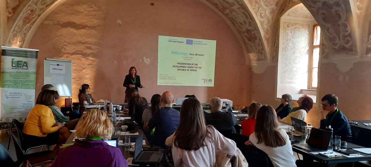 Kratki opis projekta: Projekat SMEnergy ima za cilj uspostaviti mrežu pilot-servisnih centara u zemljama dunavske regije, koji će pružati podršku malim i srednjim preduzećima (MSP) u prelasku na obnovljive izvore energije i veću energetsku efikasnost - kroz savjetovanje, pristup znanju, izradu strategija i dijeljenje dobrih praksi. Vodeći partner je Lokalna energetska agencija Spodnje Podravje (Slovenija), a projekat se implementira u osam država: Slovenija, Mađarska, Austrija, Češka, Slovačka, Bosna i Hercegovina, Bugarska i Njemačka. Period implementacije projekta je od 1. januara 2024. do 30. juna 2026. godine, dok ukupan budžet iznosi 2.065.115,00 EUR, od kojih je 80% finansirano iz Interreg Programa za dunavsku regiju. Više informacija o ovom projektu dostupno je na sljedećem linku: SMEnergy.